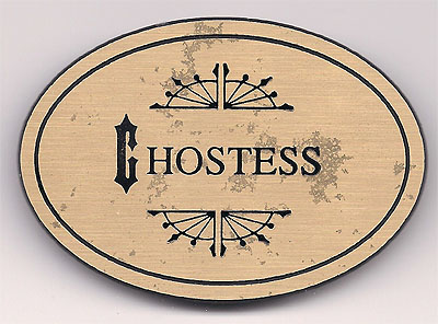 Nametag worn by staff at the famous Howard Johnson hotel in Anaheim, California, ca. 2005. |