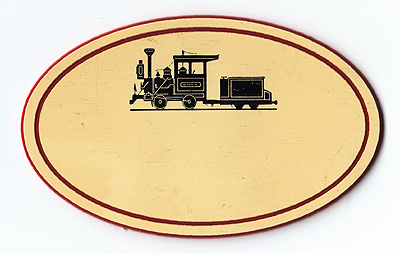 | Nametag worn by cast members who belong to the Order of the Red Handkerchief, a society of operators of the Rainbow Caverns Mine Train and Mine Train through Nature’s Wonderland attractions at Disneyland, ca. 1985. |