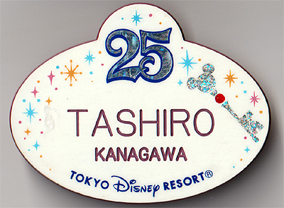 | Nametag worn by cast members at Tokyo Disneyland, ca. 2000. |