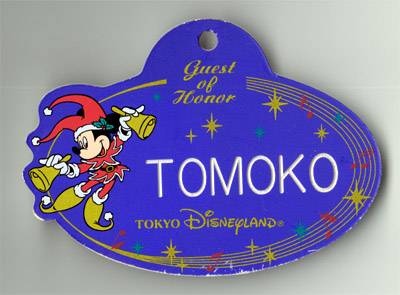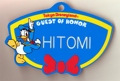 | Nametag worn by guests at the Tokyo Disneyland Resort, ca. the late 1990's. |